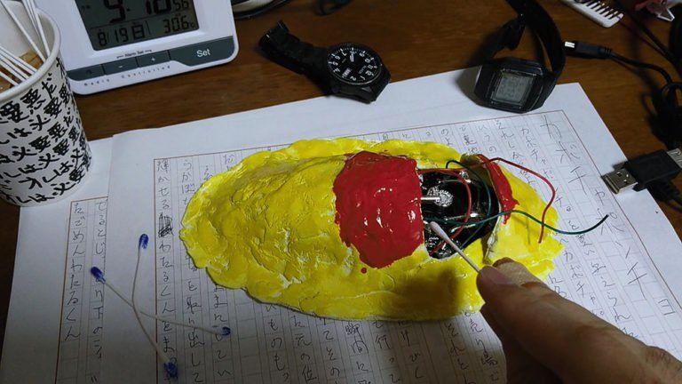 ・オムライスの中がメカになっていて、それを綿棒でメンテしている…?