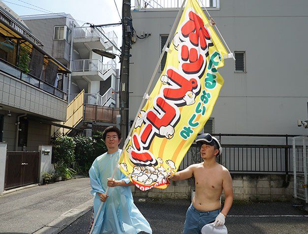 ・うわばきの焼きそば食べてる人、さっき旗持ってた人だろ。