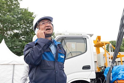「全国に、可搬型基地局は58台、車載型基地局は27台あります。KDDIでは、人が多く集まるイベントでも快適に携帯電話をご利用いただくために電波対策強化を行っています。とくに夏のこの時期は、フェスや花火大会も多く、全国各地の担当者が頻繁に出動しているんですよ」(齋藤)