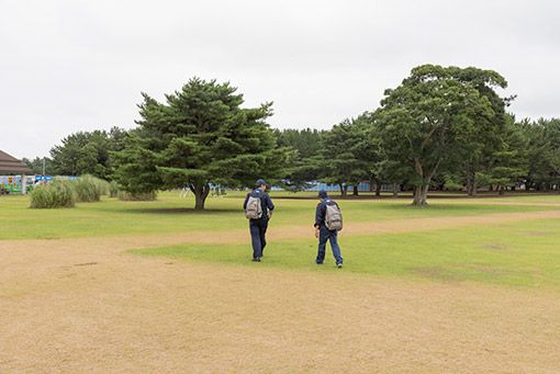 端から端へ歩いたら、少し後ろへ行ってまた端から端へ。地図の格子模様は2人の歩くルートだったのだ。